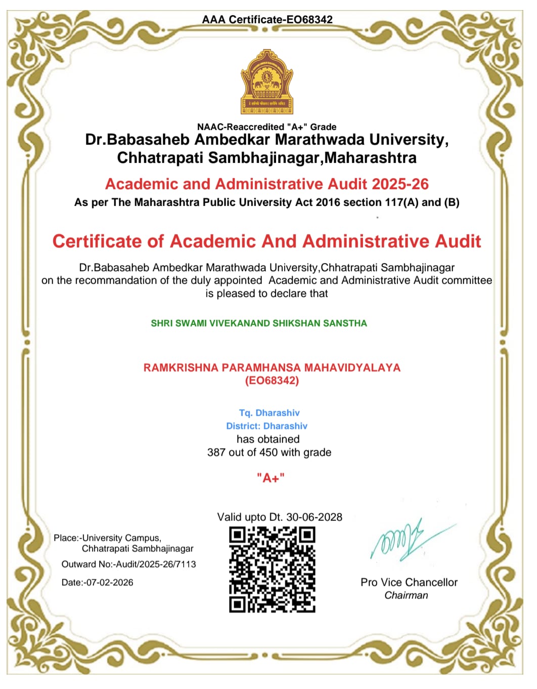 Affiliated to Dr. Babasaheb Ambedkar Marathwada University, Chhatrapati Sambhajinagar
